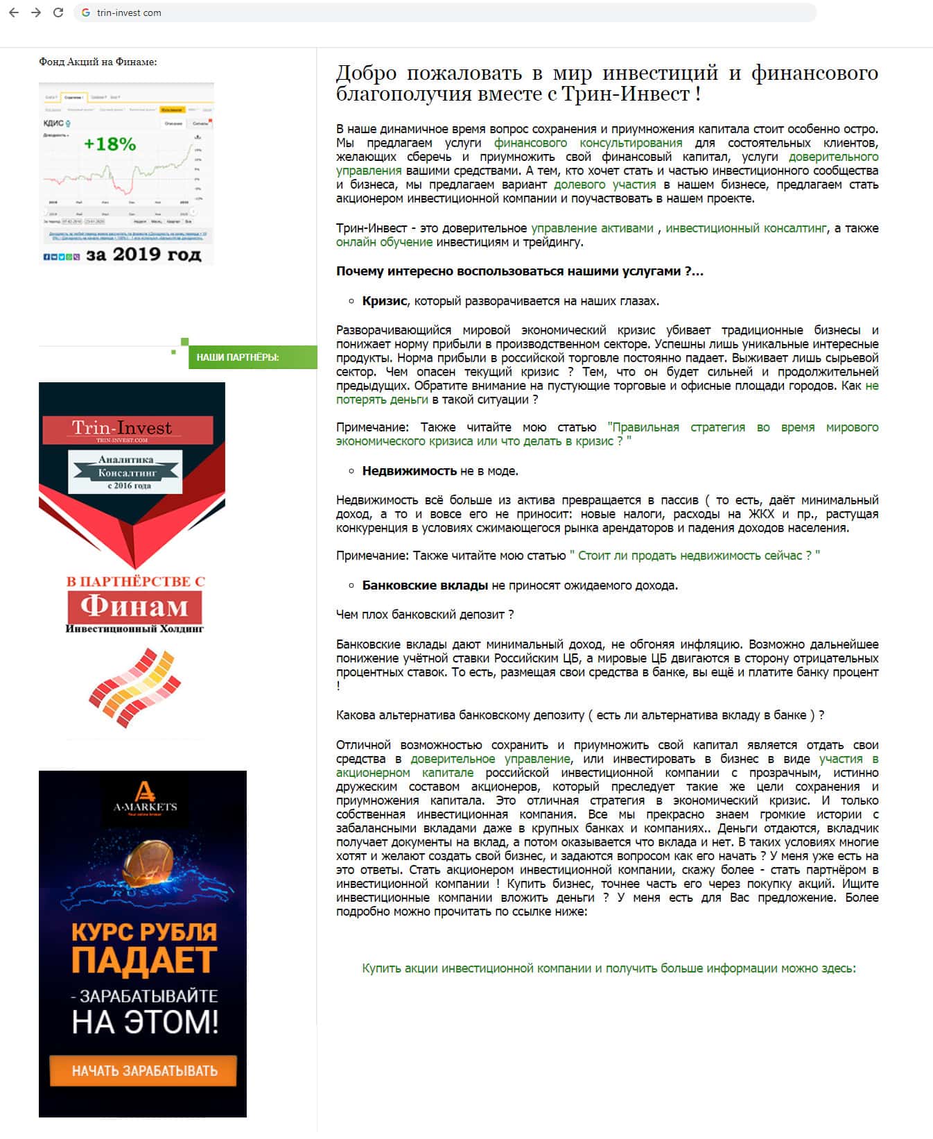- Обзор главного интернет ресурса мошенников Трин Инвест