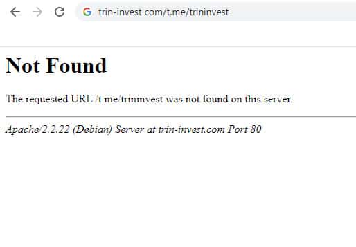 Так же в качестве связи с фирмой Трин Инвест, компания указала закрытый канал в телеграмме, но его мы тоже проверили, и оказалось, что его уже не существует. Может быть уже, а может никогда не существовало, и аферисты просто так указали данную форму связи, что бы впечатлить пользователей способами связи с фирмой.