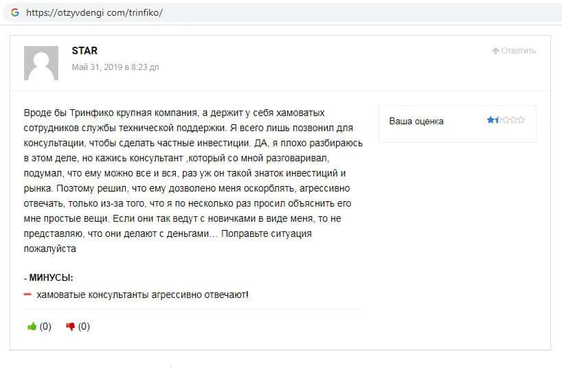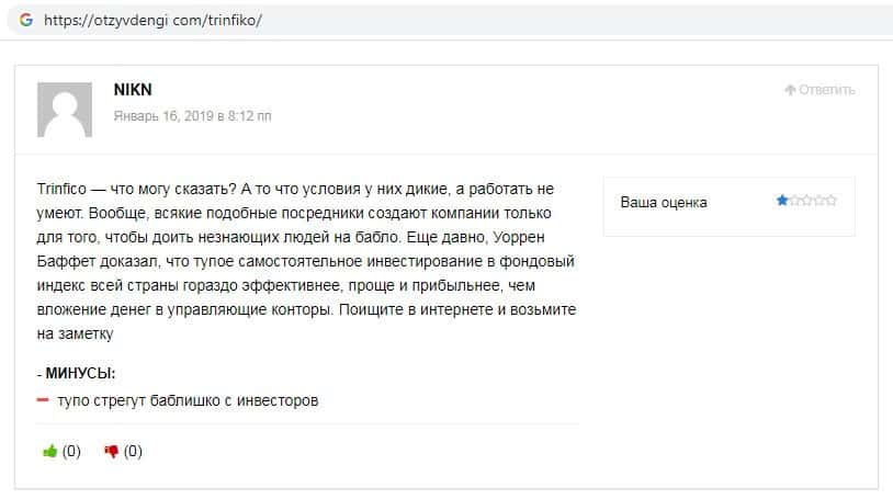 Отзывы о скам-проекте Тринфико, ныне присутствующие в интернет-сети