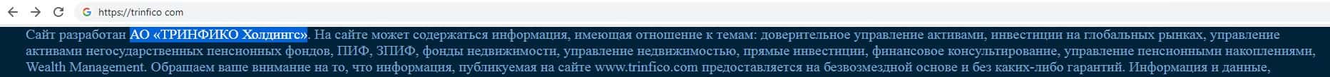 - Обзор главной страницы жульнической организации Trinfico