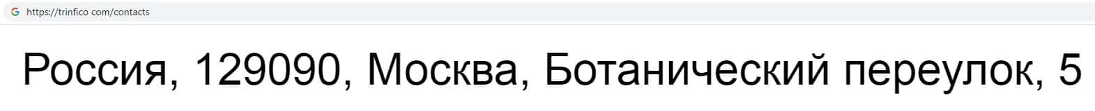 Аферисты Trinfico указали адрес местонахождения главного офиса своей компании, который наверняка липовый: