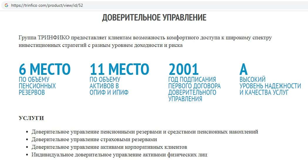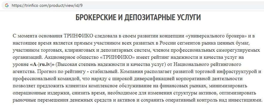 - Услуги, которые предоставляет интернет-лохотрон Тринфико