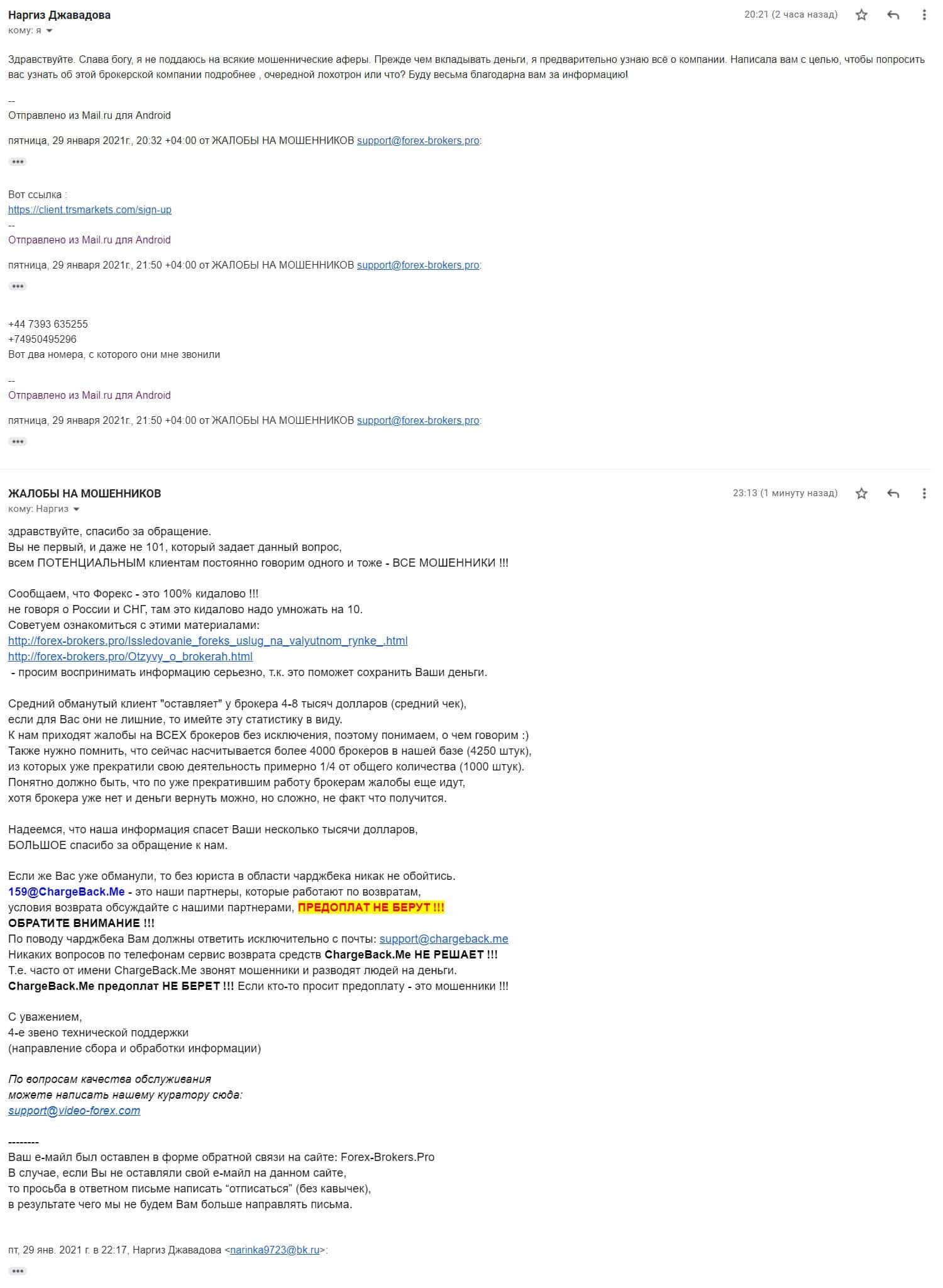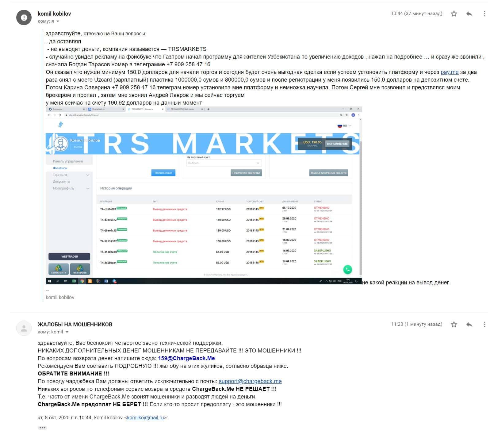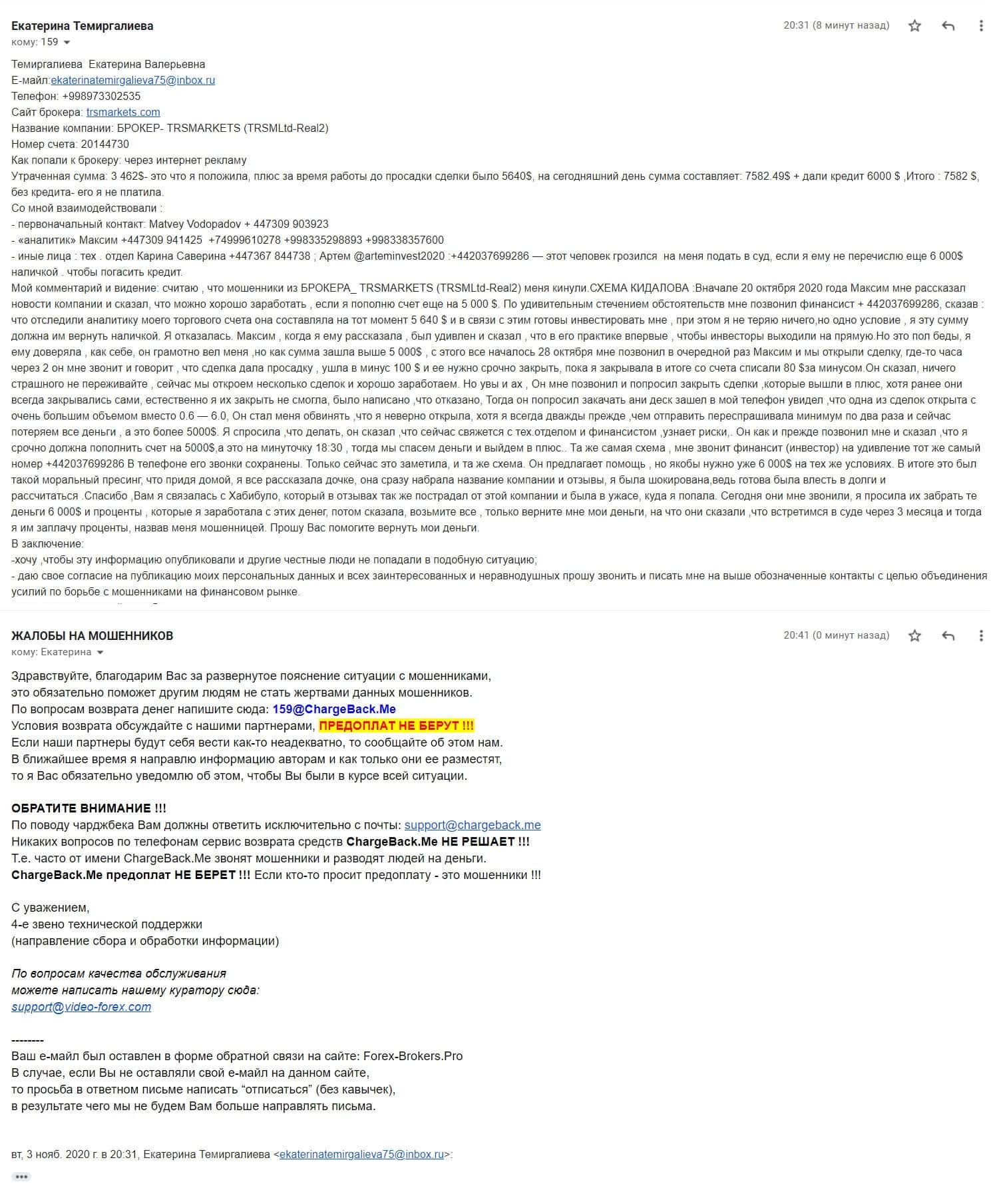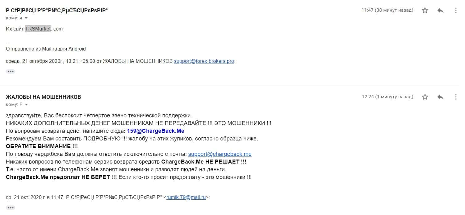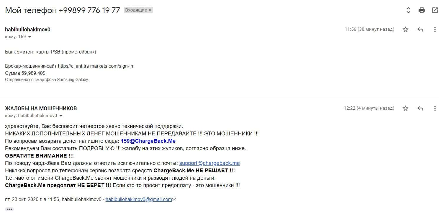 - Очередная жалоба на аферистов TRSMarkets