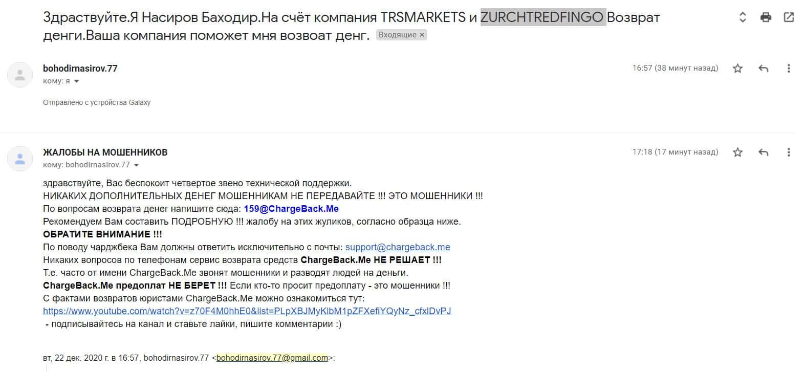 - Жалоба на мошенников TRSMarkets и Цюрих Трейд Финко