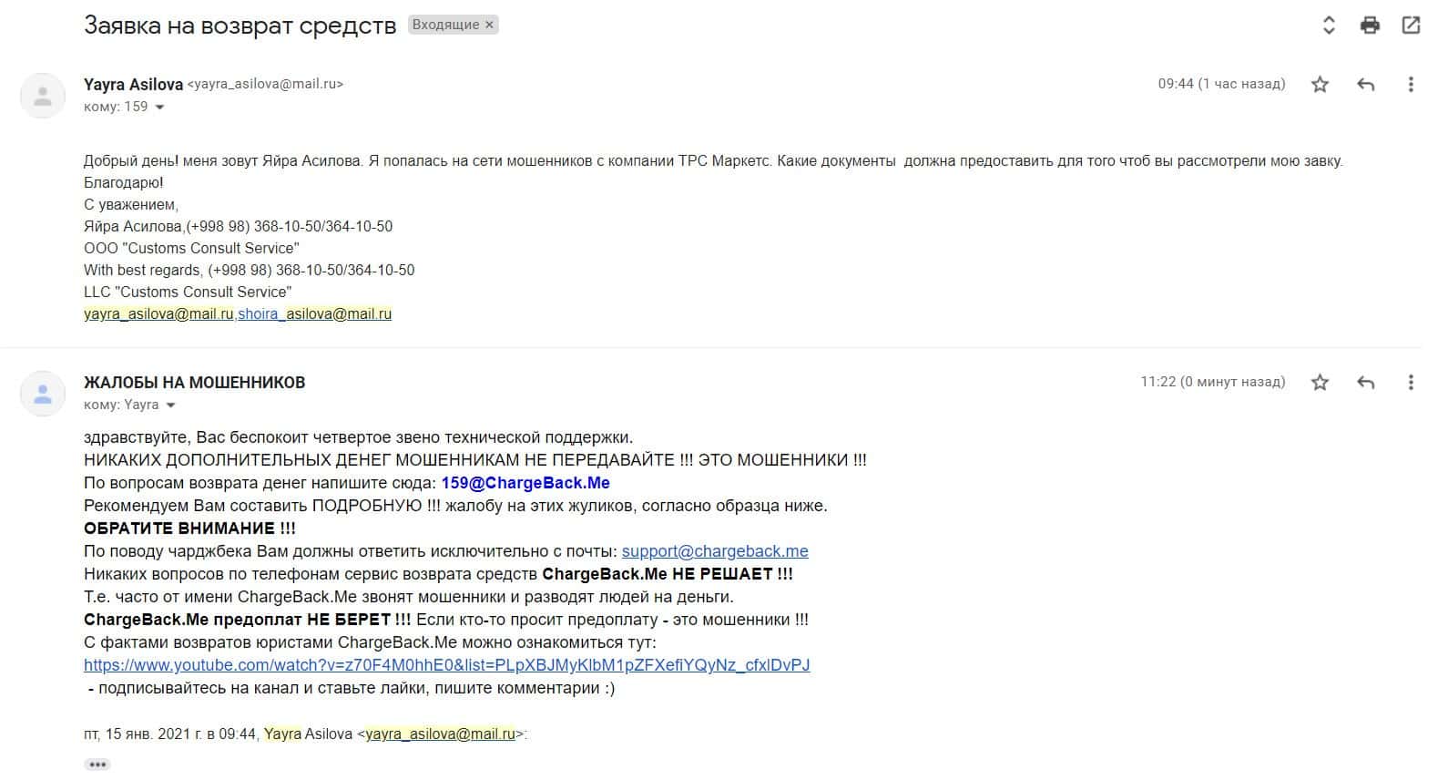 В данном разделе предлагаем увидеть информационный материал в виде жалобы на лохотронщиков ТРС Маркетс, которые названивают людям с разных номеров.