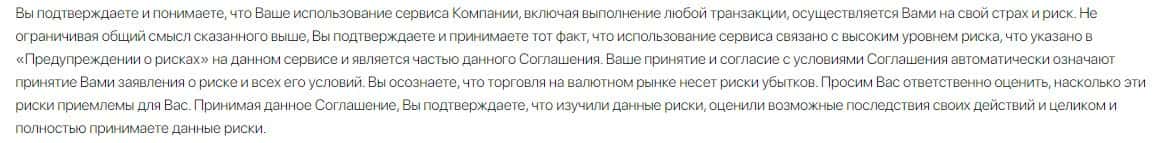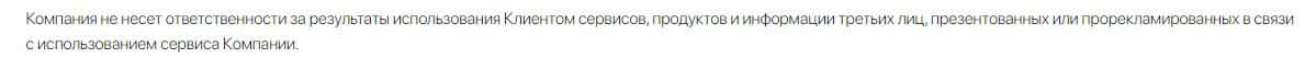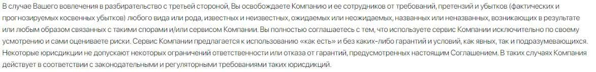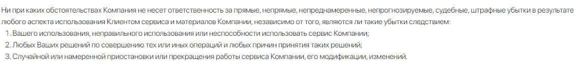 Также в соглашении сказано, что лохотрон ТРС Маркетс не несет ответственности за результаты использования клиентом сервисом и отвечать ни за что не будет.