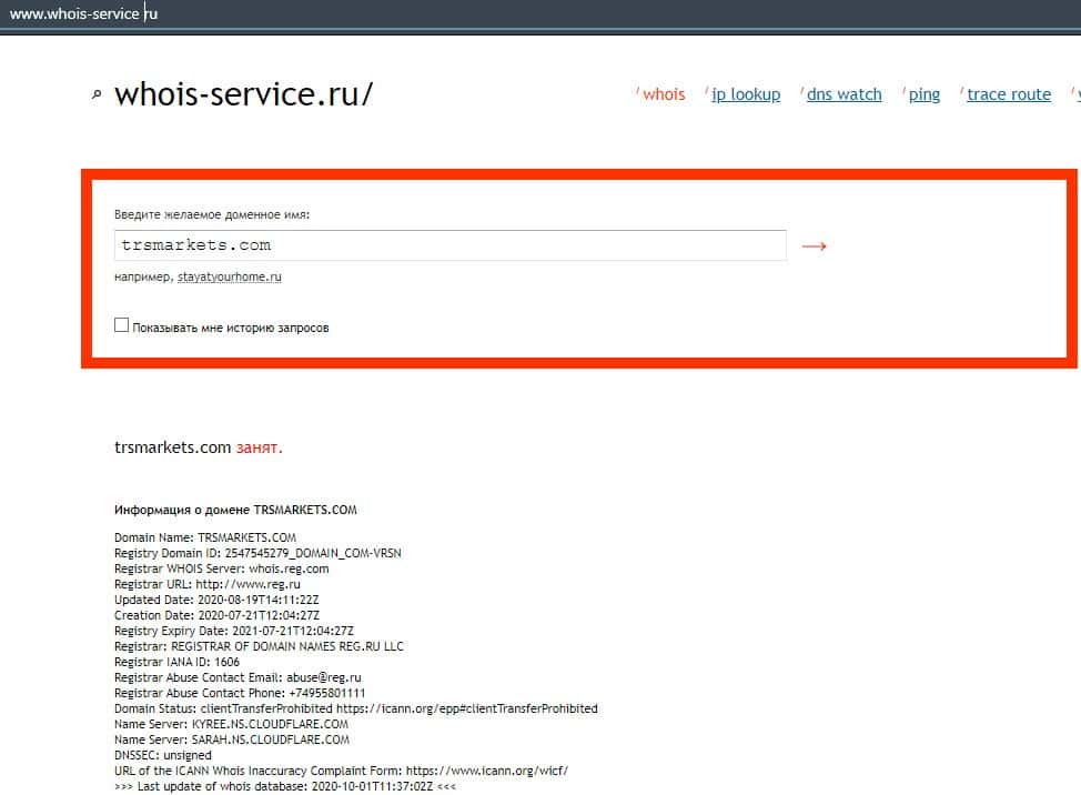 Кто владеет доменом портала trsmarkets com?