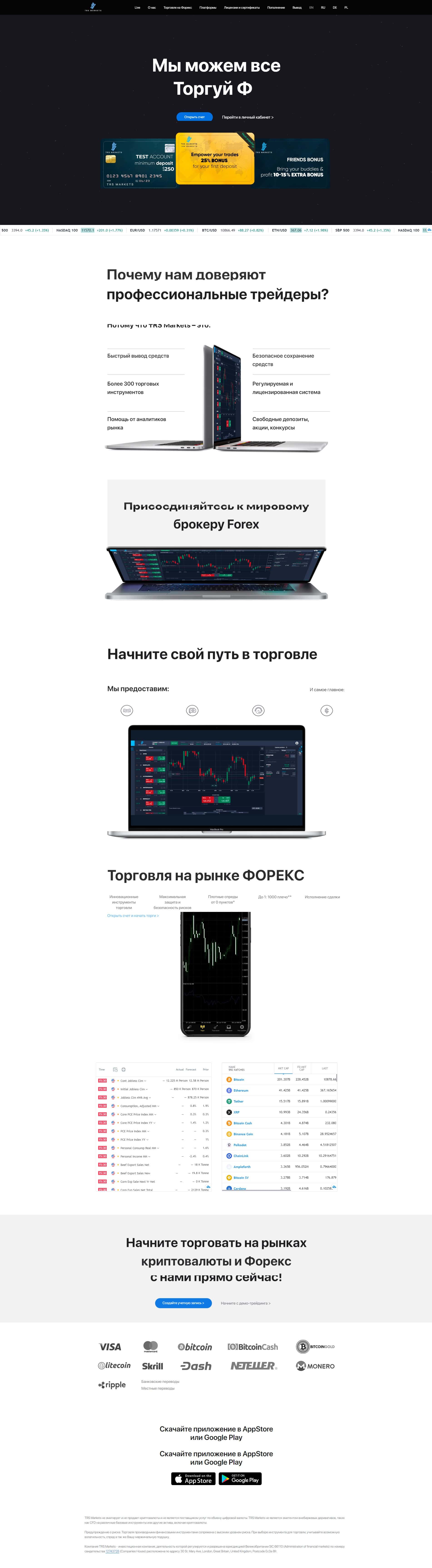 - Главная страничка портала шараги TRSMarkets