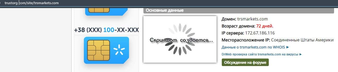 Исходя из информации на ресурсах по проверки доменов, сайт trsmarkets com создан 72 дня назад, что показывает их ничтожность и вранье о многолетнем опыте работы.