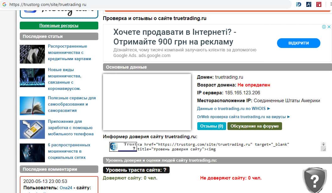- Информация о домене шарлатанского валютного брокера Тру Трейдинг