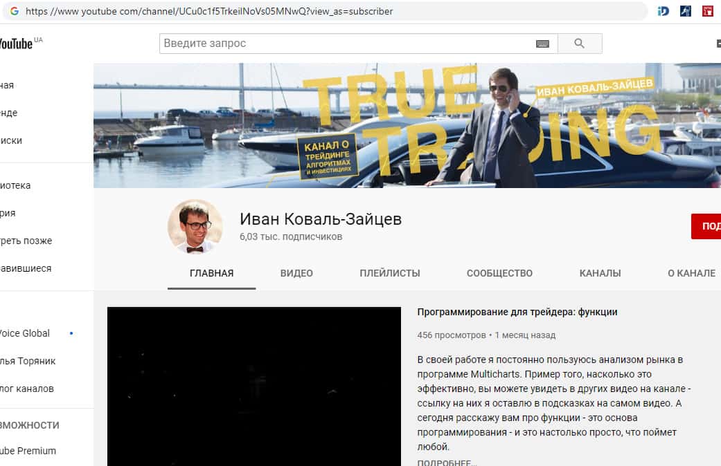 Мошеннический валютный брокер Тру Трейдинг, к сожалению, соображает достаточно здраво, а потому понимает, что ему нужно расширять поле своей деятельности, используя при этом для своих гнусных дел и обмана несчастных пользователей - канал на Ютубе. А вот, собственно и сам адрес личного канала руководителя youtube com/channel/UCu0c1f5TrkeilNoVs05MNwQ?view_as=subscriber