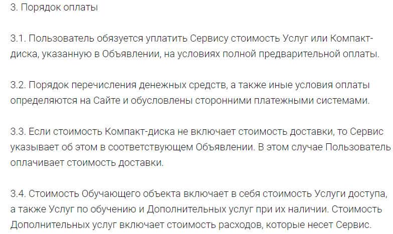 В следующем разделе клиентского соглашения "Порядок оплаты" говорится о том, что любой валютный игрок, изъявивший желание пройти обучение у плутовской компании TrueTrading, должен оплатить стоимость курса на условиях полной предварительной оплаты. Но это весьма хитрая уловка, ведь можно продать человеку воздух и смыться.