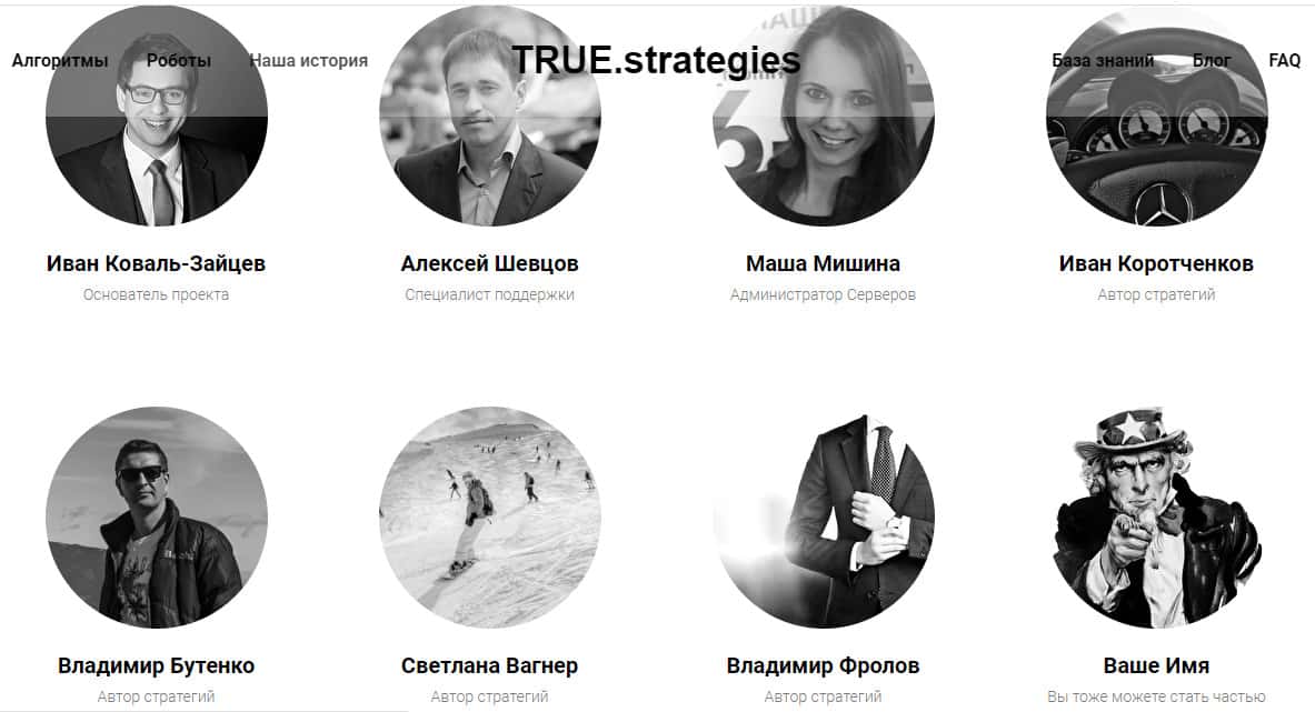 Что касается сведений о руководителе и сотрудниках данной шарашкиной компании TrueTrading, то на скриншоте, расположенном ниже, предоставлен с официального портала лжеброкера список руководства и сотрудников. Мы можем только предполагать, что эти люди каким-то образом также причастны к этому лохотрону. Ниже приведен список этих людей: