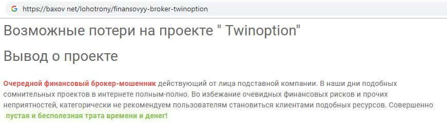 Статья-отзыв о проекте Twin Option найдена на сайте baxov net