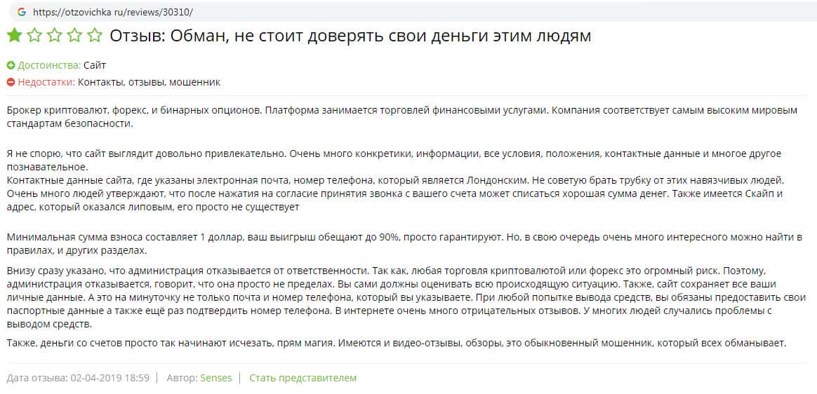 - Некий Senses пишет на информационном портале otzovichka ru о жуликах Твин Опцион