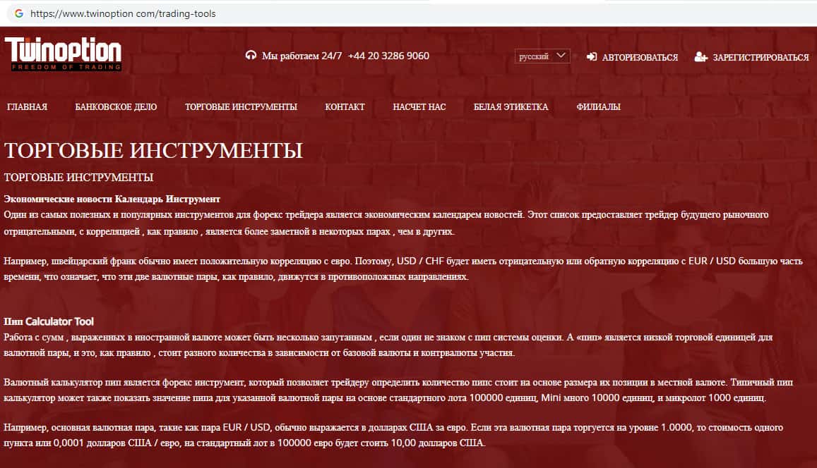 Торговые инструменты мошеннической конторы Twin Option