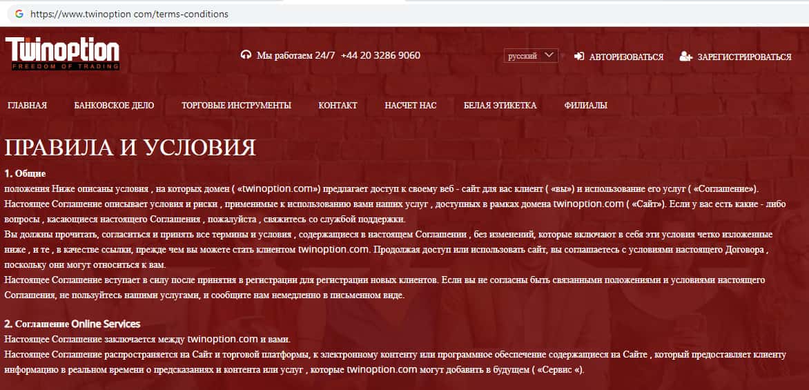 Правила и условия скам-компании Твин Опцион