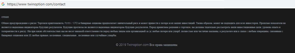 Контактная информация жуликов Твин Опцион