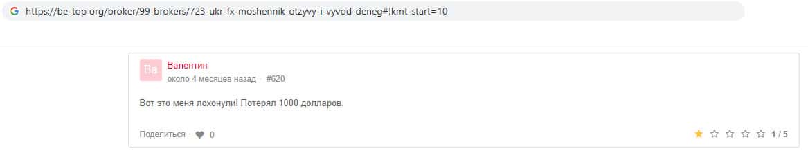 Укр ФХ - мошенники, не ведитесь - такой отзыв оставил пользователь. Коротко и ясно, ничего лишнего, просто по факту. Благодаря таким отзывам количество обманутых пользователей сокращается, но не исчезает, так как многие всё таки привыкли верить компаниям, так как их уговору звучат убедительнее.