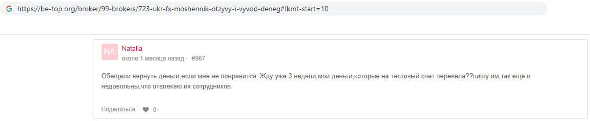 Так же ещё один интернет ресурс сделал обзор на данную фирму, и их мнения сошлись. Этот сайт тоже считает, что контора UkrFX Pro является мошеннической, хотя бы потому, что вывод средств с компании не подтверждён ничем. Сайты не связанны между собой, просто 2 абсолютно разных сайта обвиняют в мошенничество контору кидал UkrFX Pro.
