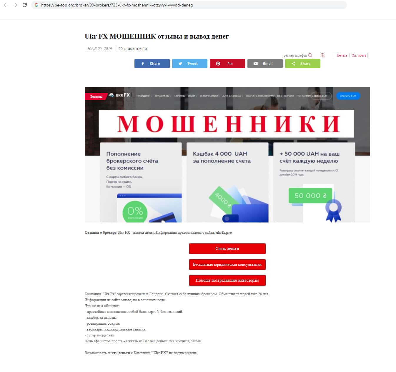 Ссылки на источники информации о аферистах UkrFX Pro