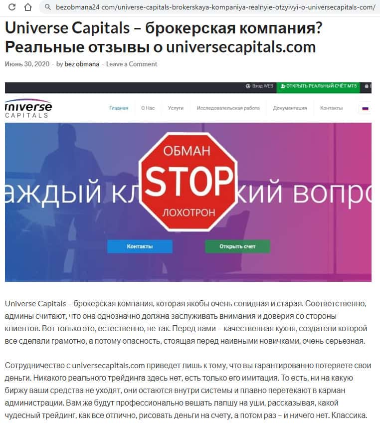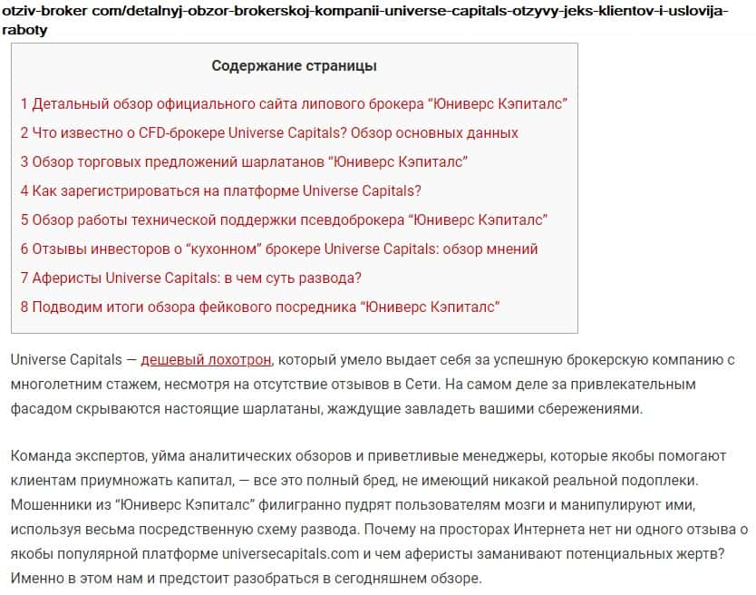 Обзоры на жуликов UniverseCapitals на других интернет-ресурсах