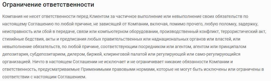 Также мошенники Универс Капиталс решили себя еще дополнительно обезопасить и открестились от любой ответственности, если решение приняла сторонняя биржа.