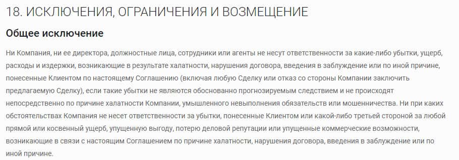 Жулики Универс Капиталс считают, что ваши убытки - это ваши проблемы, и снимают с себя любую ответственность, если вы потеряете все.