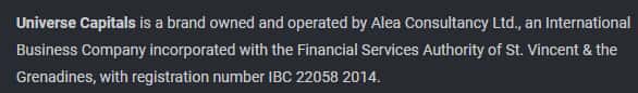 Под маркой лохотрона universecapitals com на самом деле находится офшорная контора Alea Consultancy Ltd. Они специально там зарегистрировались, чтобы обманывать.