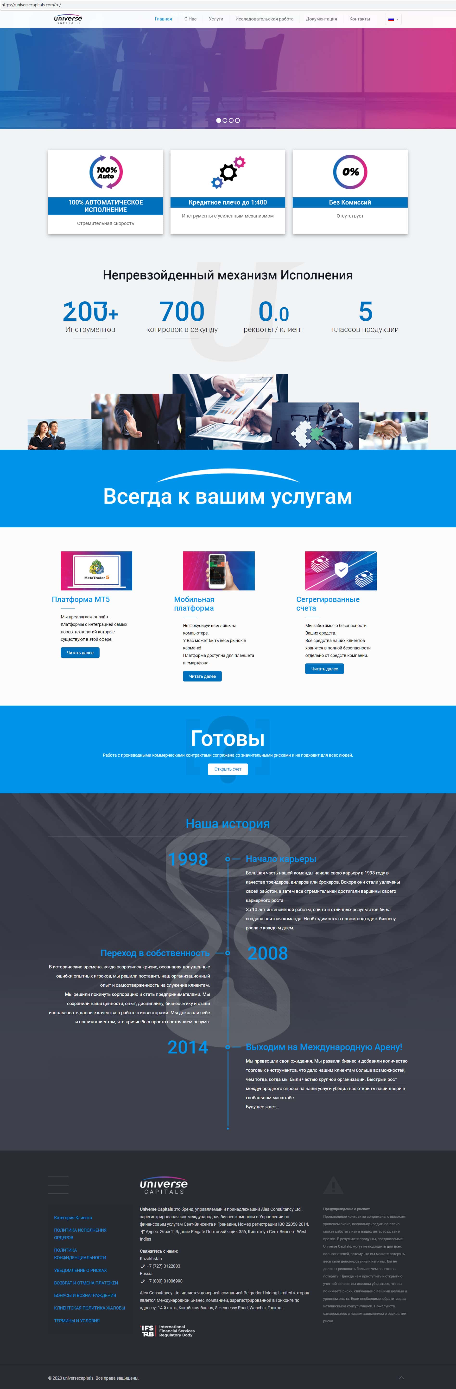 - Официальный сайт мошеннической конторы UniverseCapitals