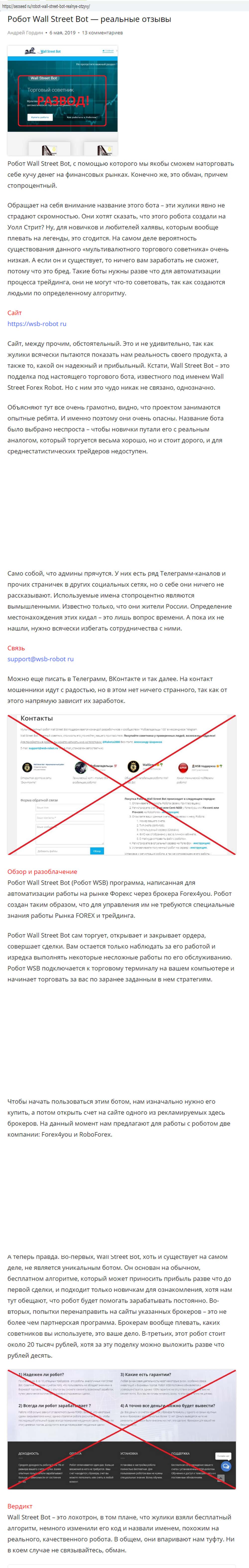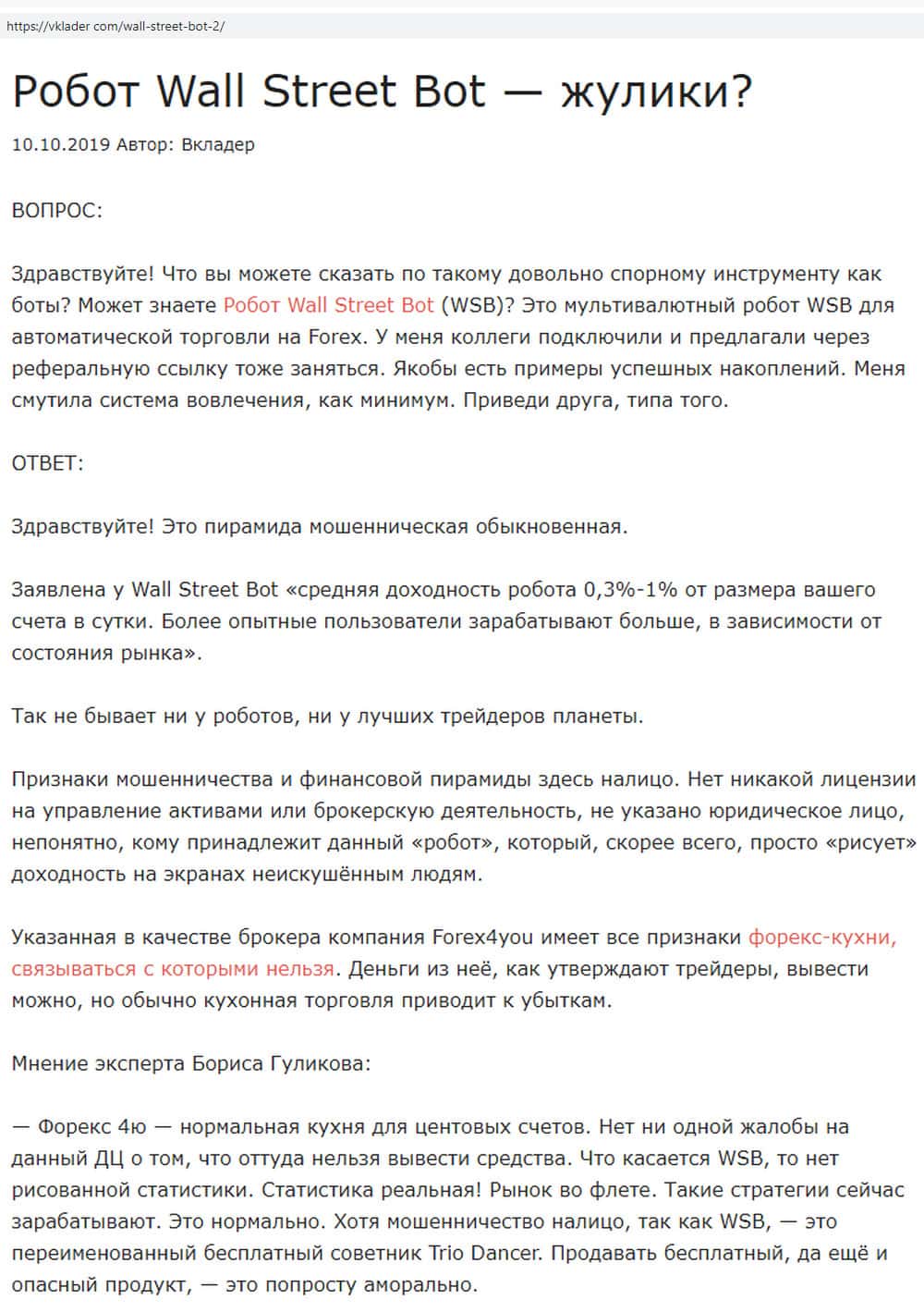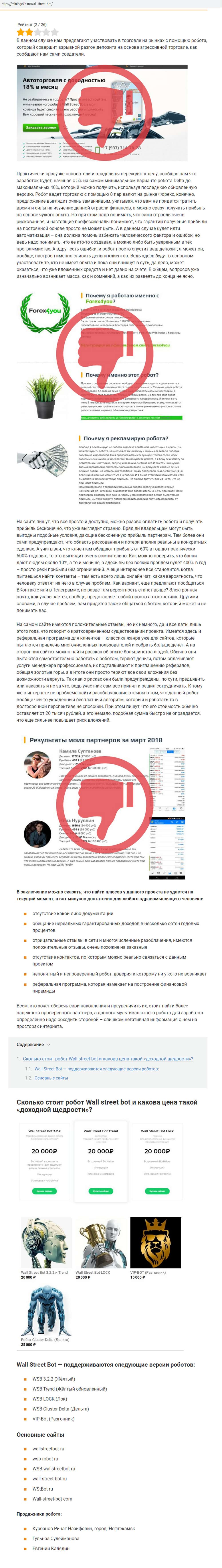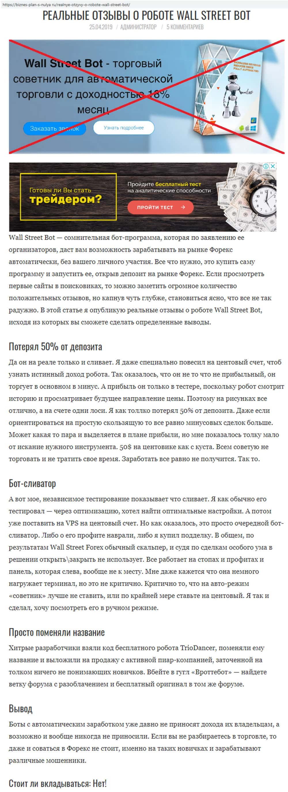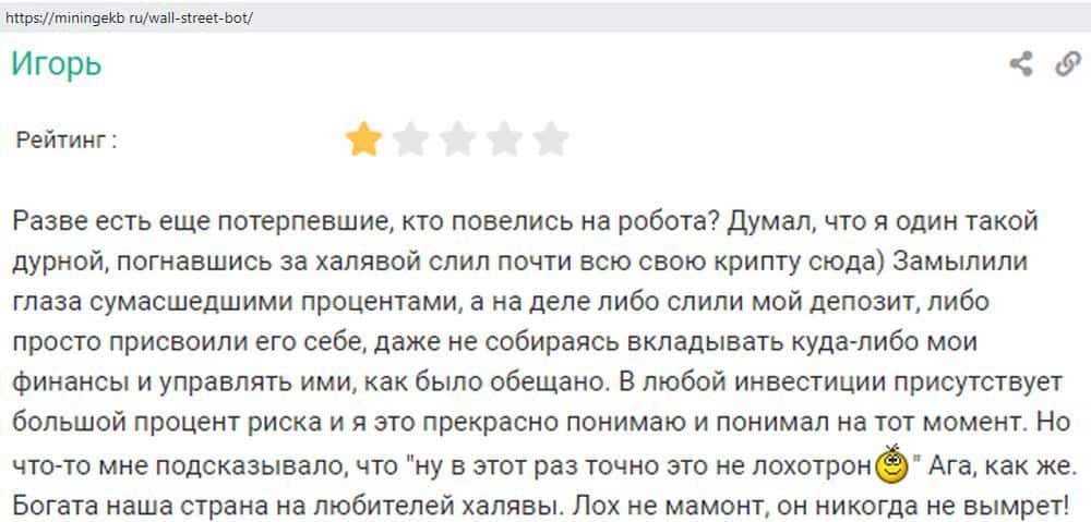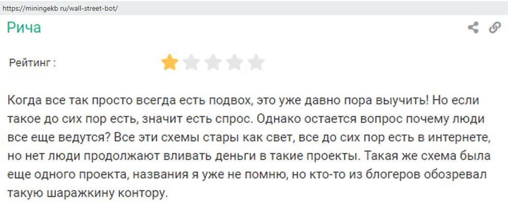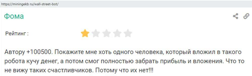 - Обзоры скам-проекта Уолл-стрит Бот на разных ресурсах