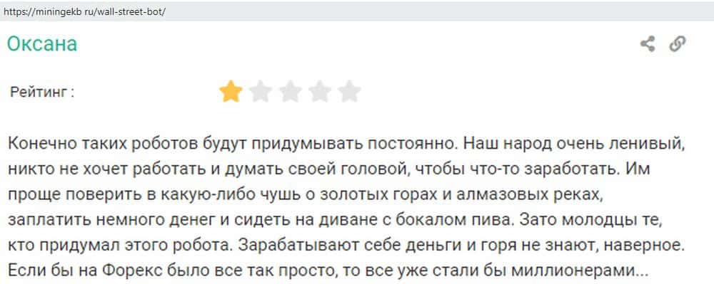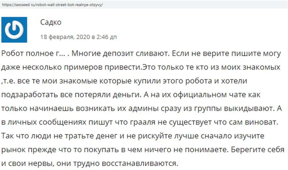 Люди, которые нахваливают лохотрон Wall-Street Bot - это сами его создатели, либо трейдеры, которые пытаются покрыть собственные убытки за счет привлечения рефералов.