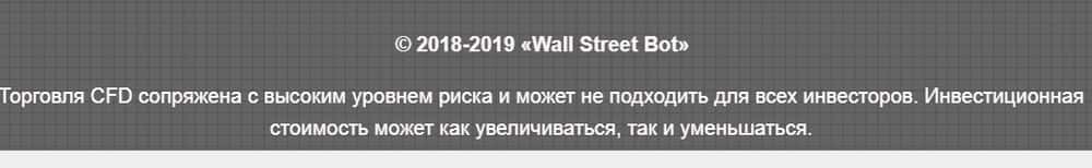 Мошенники Уолл-стрит Бот вообще не считают нужным предоставлять жертвам хоть какую-либо юридическую информацию. Они вообще не упоминают ни о лицензии, ни о регистрации.