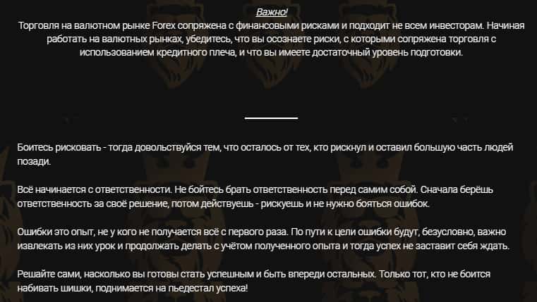 Причем уведомление о рисках кидал Уолл-стрит Бот составлено в форме вызова. Хочешь - рискуй, и тогда чего-то добьешься, не хочешь - работай за копейки. Откровенная провокация.