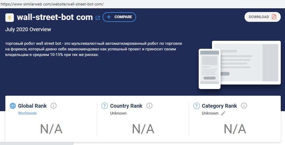 Ресурс симиларвеб ком не может определить источники трафика скам-проекта Уолл-стрит Бот - его посещает слишком мало людей, что является очередным признаком лохотрона.