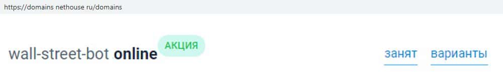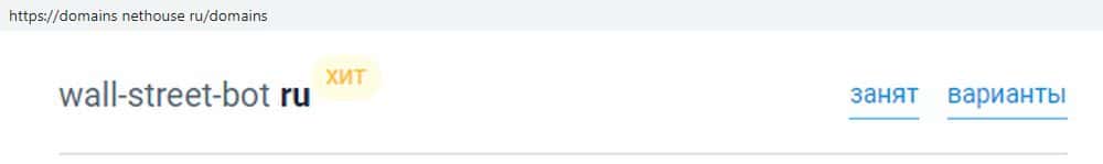 Если проверить тот же домен с точкой "wallstreetbot.ru", увидим аналогичный результат. Клоном шараги Wall-Street Bot, который сидит на этом домене, почти никто не интересуется.