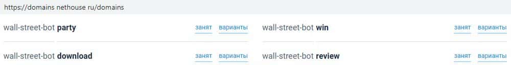 Шарлатаны Уолл-стрит Бот пытаются оккупировать все возможные домены, подходящие по названию. В группе российских доменов обнаружились те, на которых сидят клоны аферы: