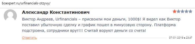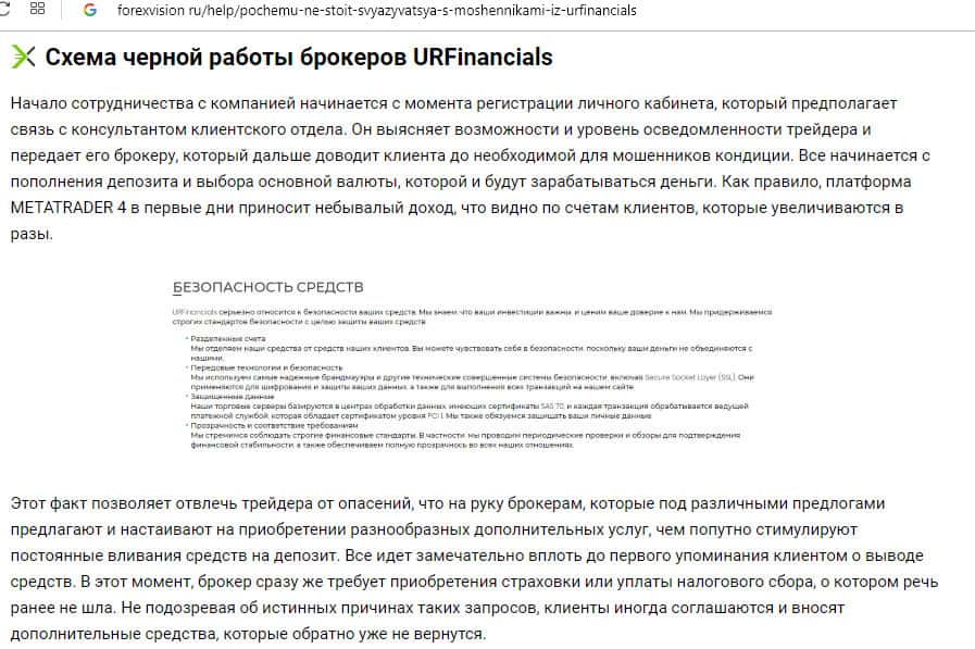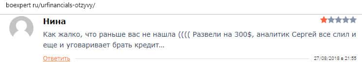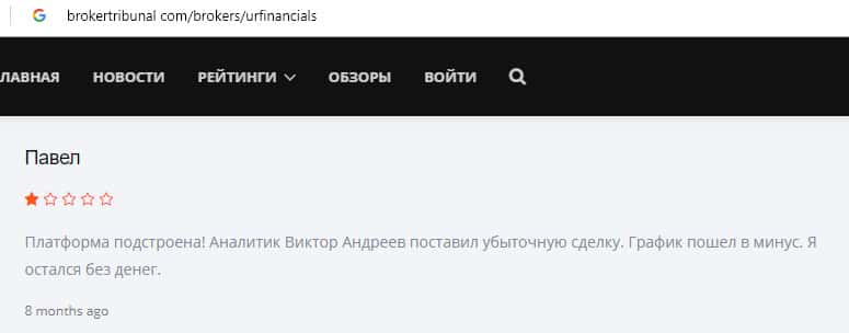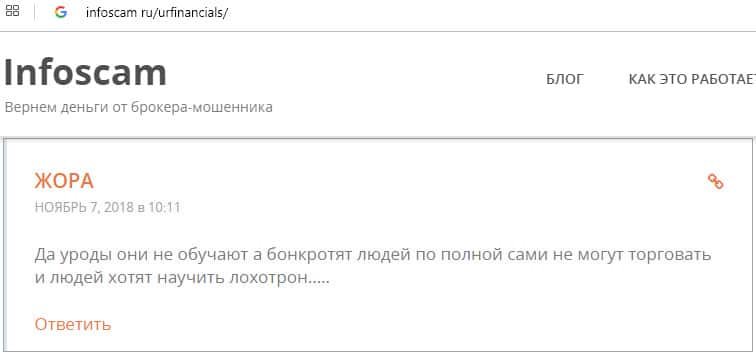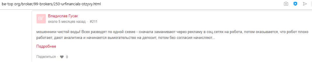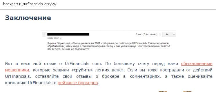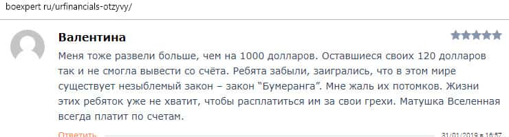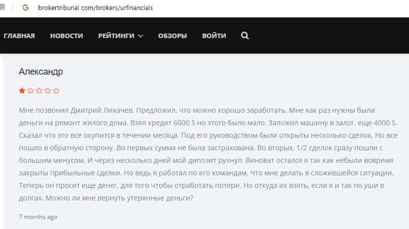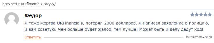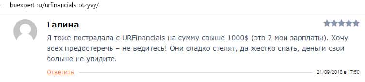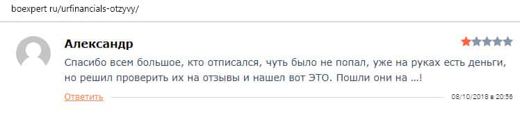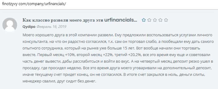- Негативные отзывы о UR Financials уберегло потенциальную жертву