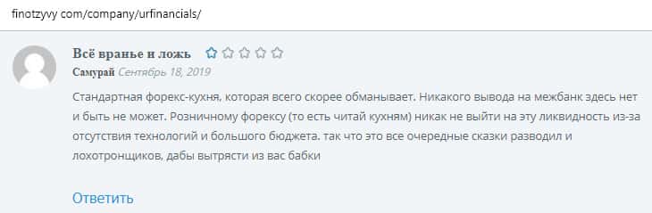 Отзыв об обычной форекс-кухне УР Файнэншилс