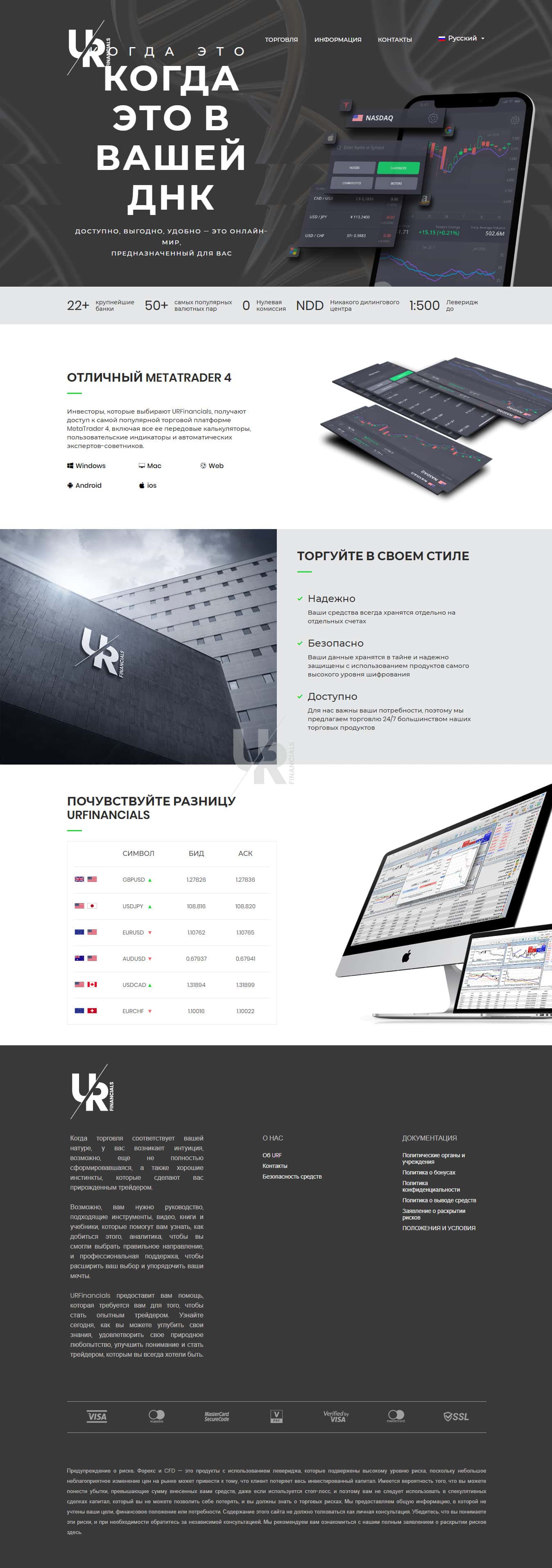 Аферисты брокерской конторы UR Financials сильно не выкладывались над созданием сайта, поэтому сделали его на минимальном уровне. Как указано на ресурсе дают они плече 1 к 500 при полном депозите в 100 долларов, что естественно разорвет счет. А торговая платформа МетаТрейдер 4 просто добавляет уверенности, что в этой конторе манипулируют котировками.
