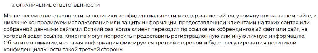 В документе о политике конфиденциальности конторы UR Financials также не все так просто, потому что жулье использует и здесь лазейки, чтобы можно было спокойно торговать базой копий документов и не нести при этом никакой ответственности. Вот и здесь они снимают с себя ответственность, если передаваемая информация третьим лицам будет использована не по назначению.