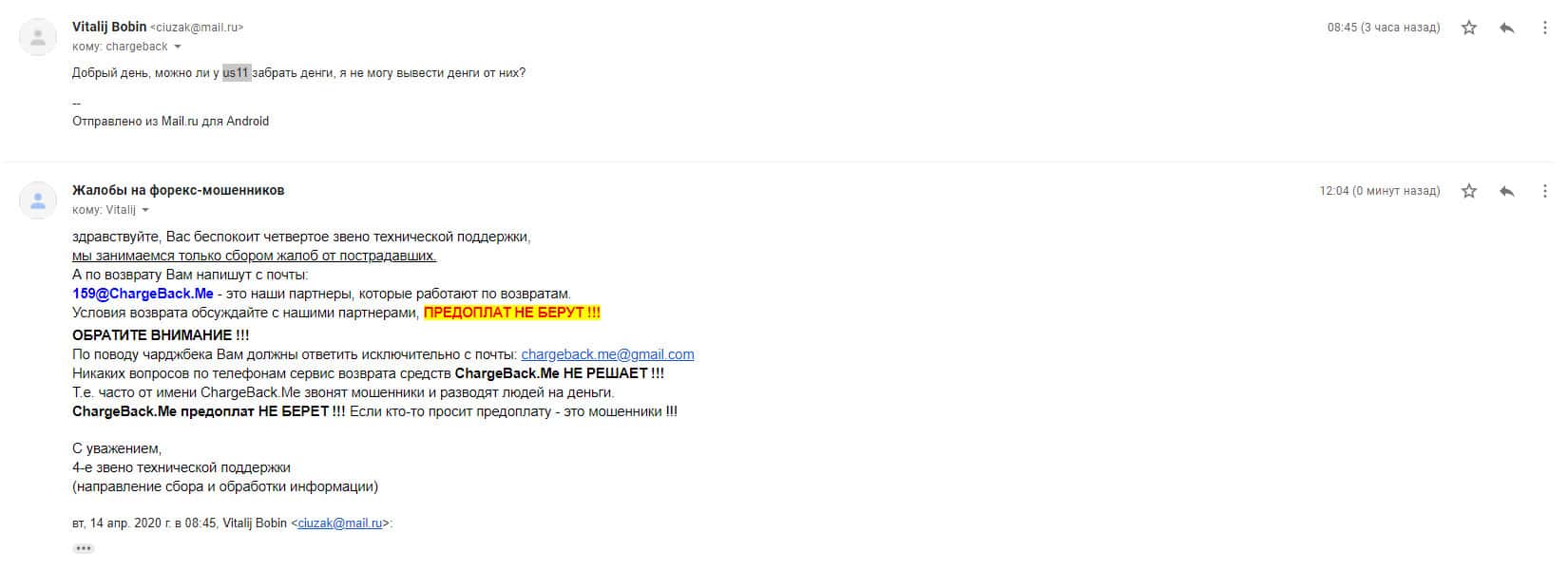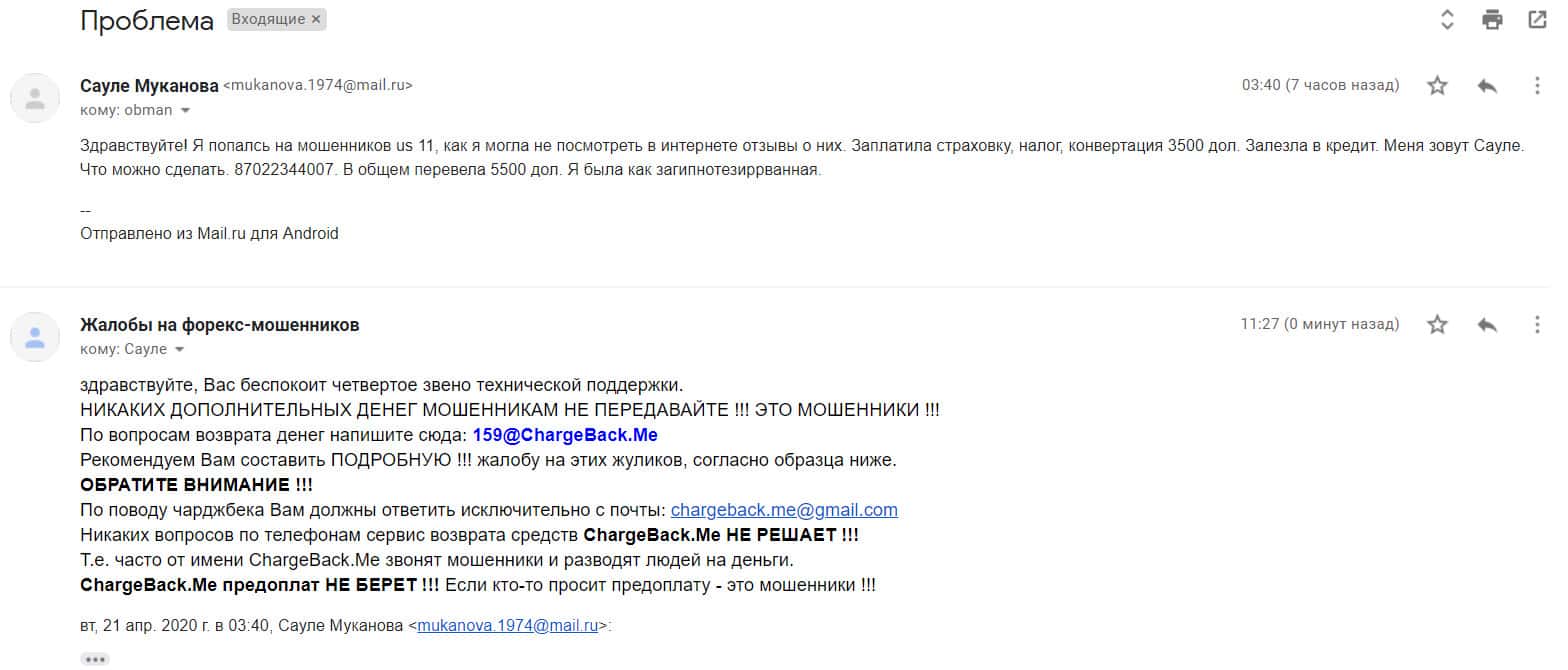 В данном разделе предлагаем ознакомится с письмом очередного клиента мошеннической компании ЮС11, который также стал жертвой мошенничества, и это произошло из-за того, что US11 является типичным скам проектом, предназначенным для отъема денежных средств у доверчивых пользователей всемирной сети.