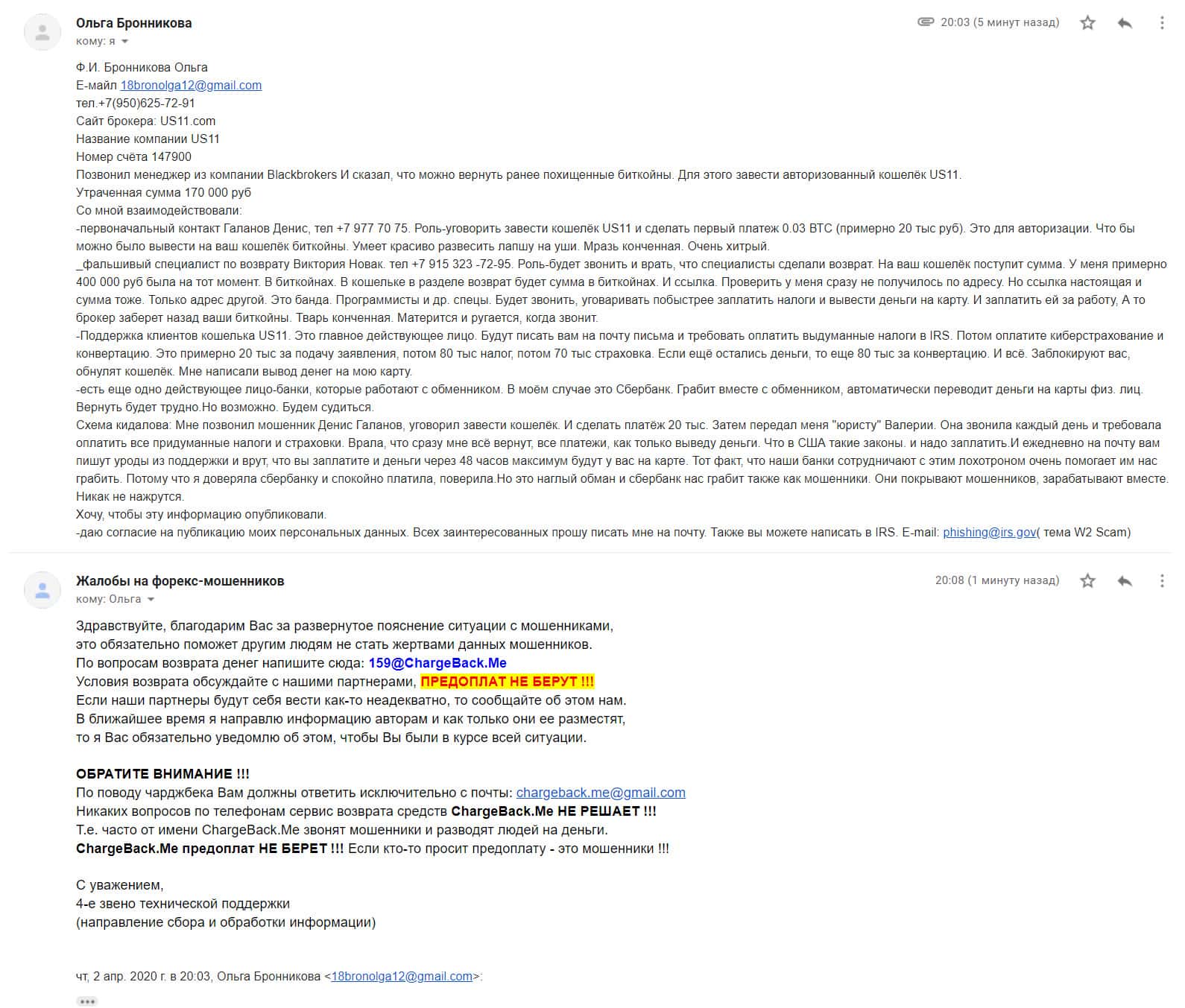 Далее представлена жалоба от человека, который попался на удочку к мошенническим брокерам Форекс и тут его начали обрабатывать другие аферисты, которые якобы помогают вернуть украденное. Это лохотрон US11 и эти жулики наживаются на горе пострадавших, воруя у них деньги повторно.