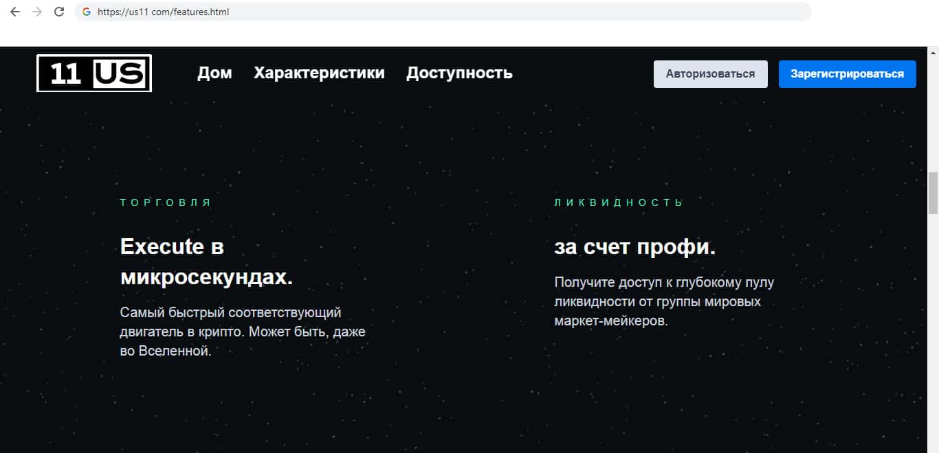 Далее контора кидал US11 начинает откровенно вешать лапшу на уши своим клиентам, утверждая, что двигатель компании является самым быстрым не только в крипто но и во вселенной. Так же компания рассказывают, что их мировые маркет - мейкеры предоставляют доступ к глубокому пулу ликвидности.