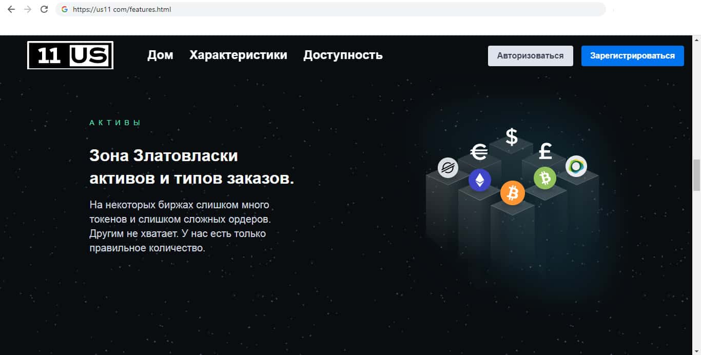 Так же на сайте кидал US11 присутствует информация о активах. Аферисты рассказывают о том, что на некоторых биржах слишком много токенов и очень много сложных ордеров, по этому компания создала правильное количество. но вот только как они узнали, что именно это лучше для пользователя? Они просто напросто ограничили пользователя в выборе.