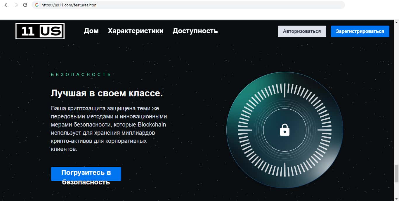Лохотронщики ЮС11 так же рассказывают о защите, которую их компания якобы предоставляет клиентам. Они утверждают, что криптозащита клиента защищена теми же передовыми методами и инновационными мерами безопасности, которые Blockchain использует для хранения миллиардов крипто - активов для корпоративных клиентов.