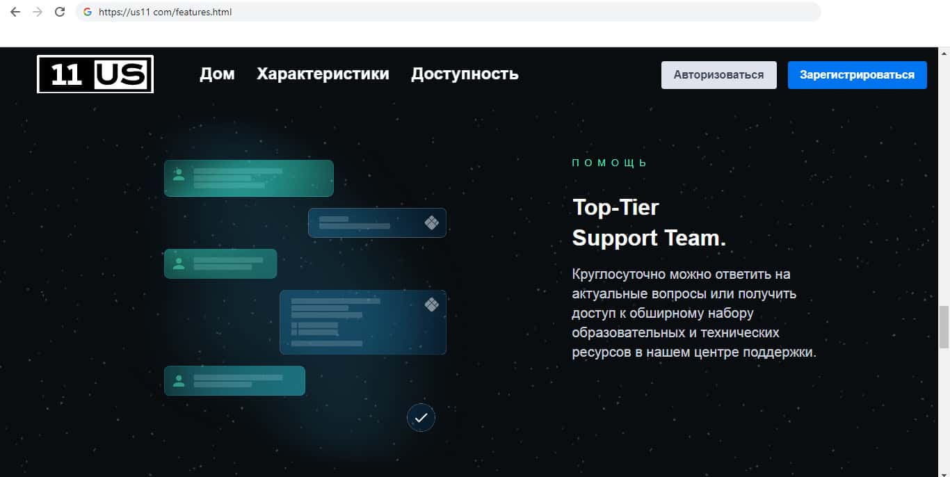 На своём сайте махинаторы ЮС11 опубликовали информацию о том, как работает их поддержка. Утверждается, что поддержка мошенников круглосуточная и ответит на актуальные вопросы клиента, а так же поможет получить доступ к обширному набору образовательных и технических ресурсов. Всё это конечно красиво звучит, но на деле этого всего нет...