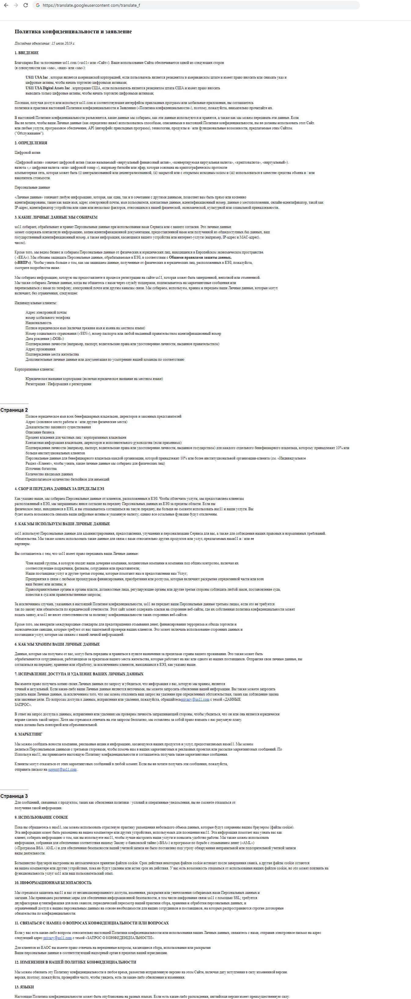 Так же мы представляем перевод политики конфиденциальности на Русский язык, так как на сайте компании документы только на Английском языке.