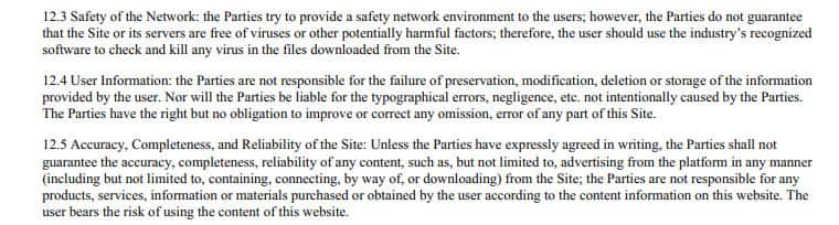 В клиентском соглашении есть несколько ужасающих пунктов, в которых мошенники ЮС11 говорят, что не несут ответственности за убытки клиента связанны с техническим обслуживанием сайта, хакерских атаках, а так же землетрясениями и другими катаклизмами. То есть мошенники могут приостановить сайт, слить клиентов, и списать всё на техническое обслуживание или катаклизм.