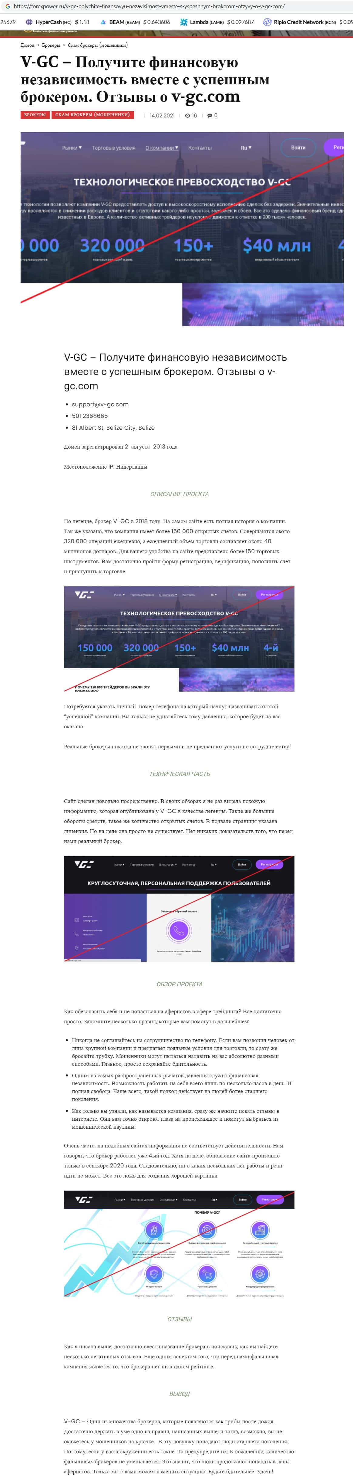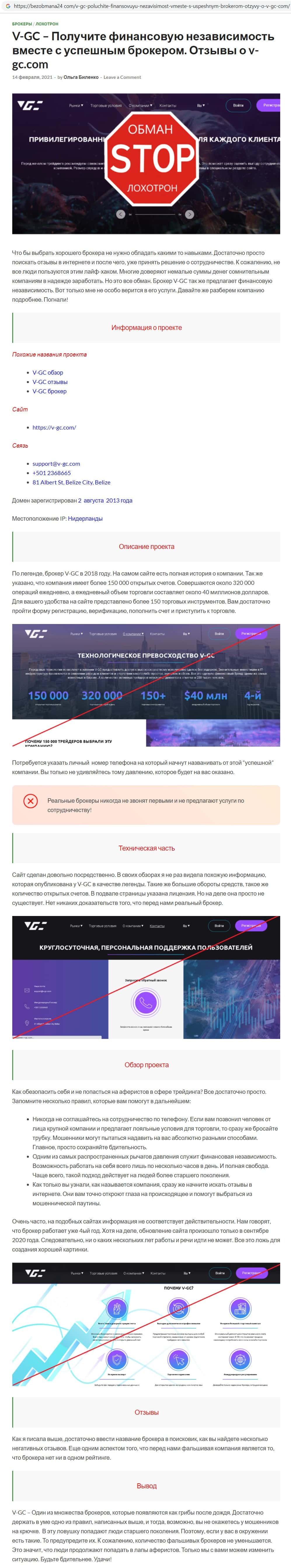 Статью о финансовых кидалах V GC опубликовал сайт bezobmana24 com, который утверждает, что данная фирма является всего лишь очередным финансовым мошенником.